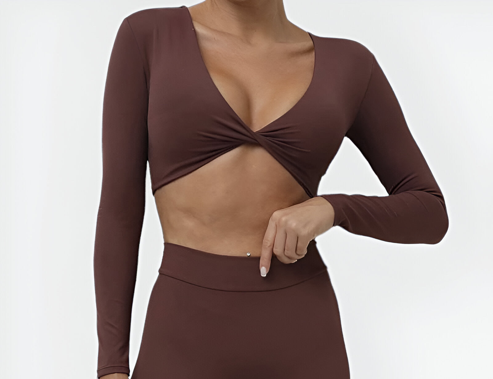 Dale un giro a tu estilo con Crop Top Serenity. Con su diseño frontal de giro, este crop top te brinda un look único y moderno. Hecho con materiales de alta calidad, es cómodo y duradero. Perfecto para un día casual o un entrenamiento intenso.
