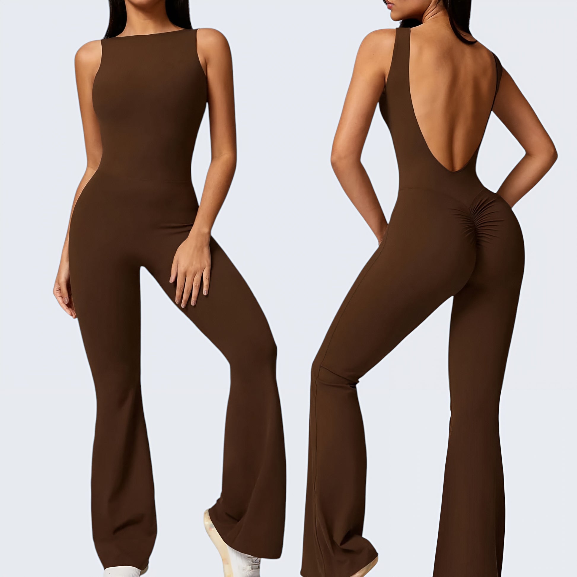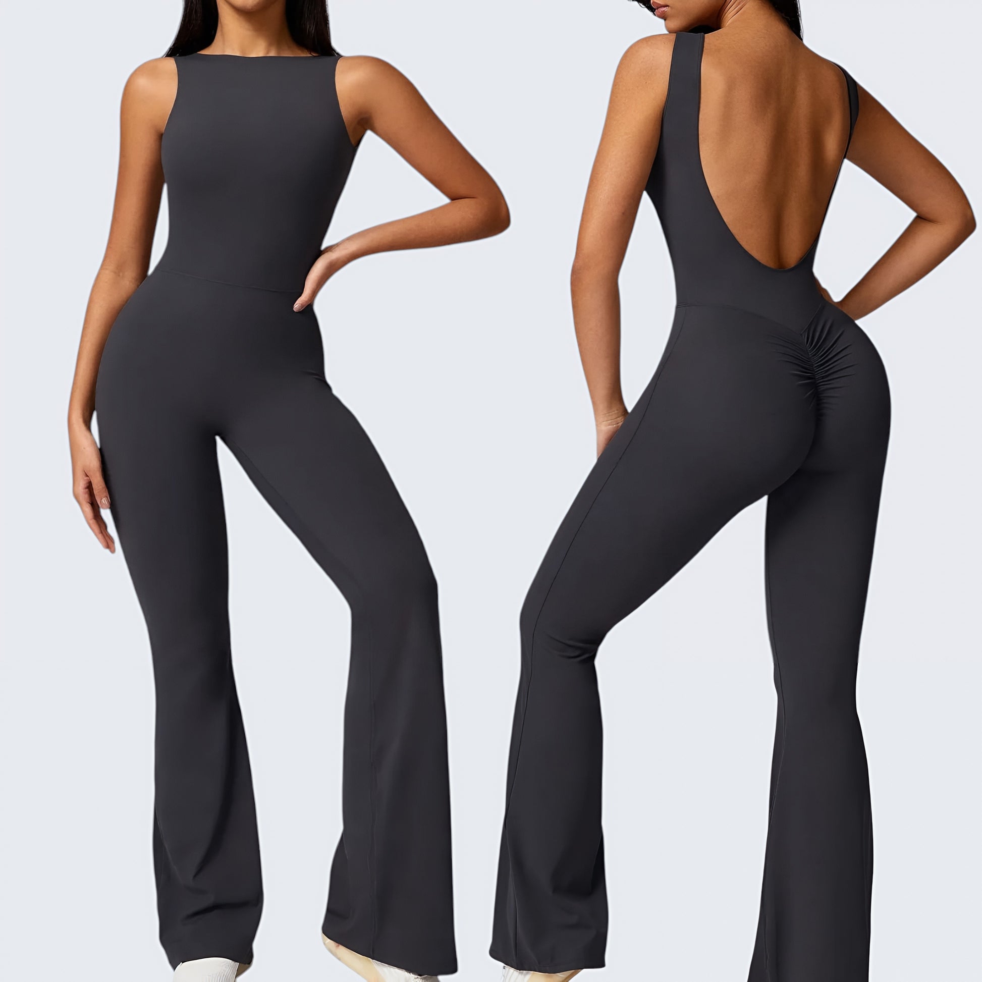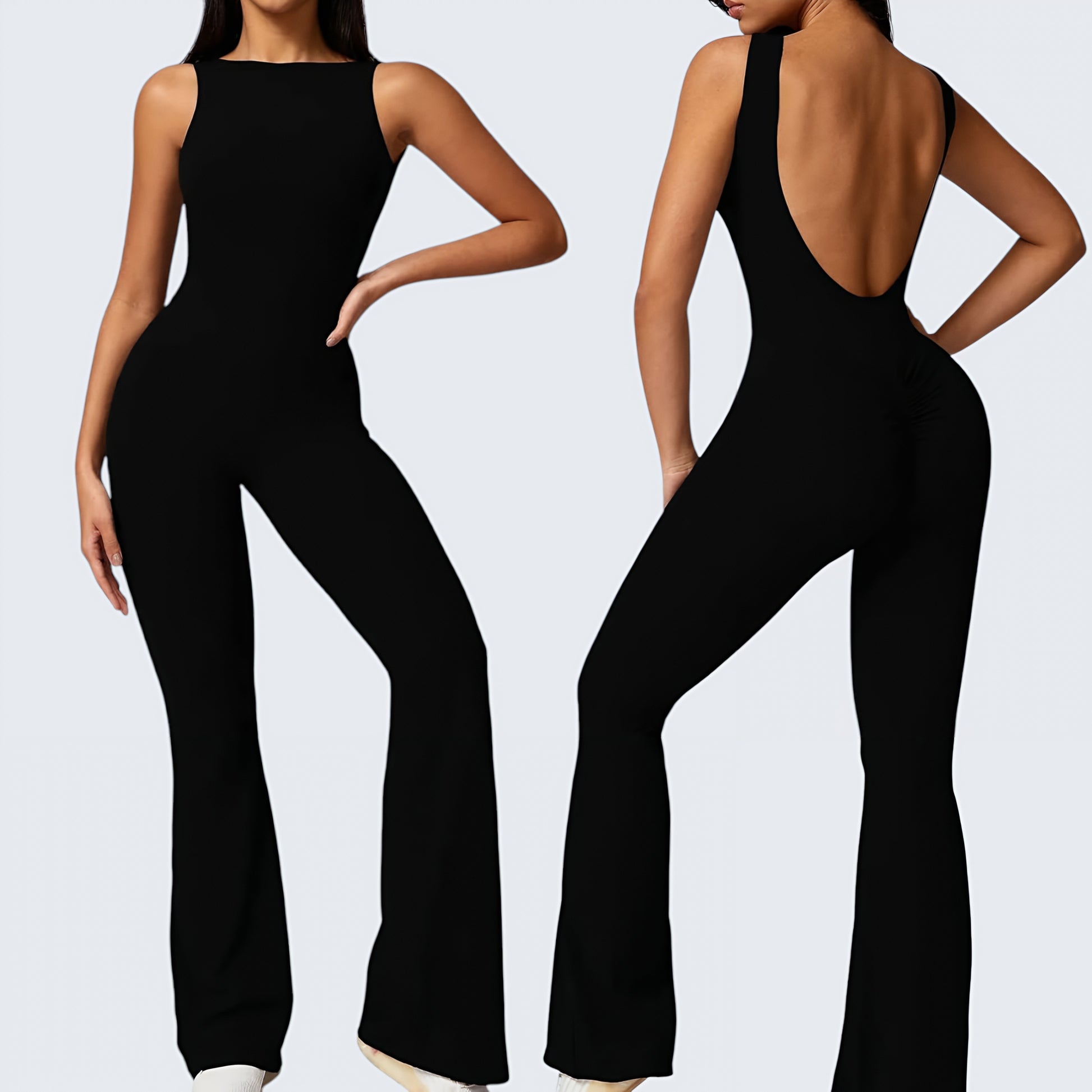 Este Enterizo es perfecto para aquellas que buscan estar a la moda y cómodas al mismo tiempo. Con su espalda abierta y bota ancha, combina perfectamente con el estilo athleisure. ¡Obtén un look moderno y versátil con este enterizo!
