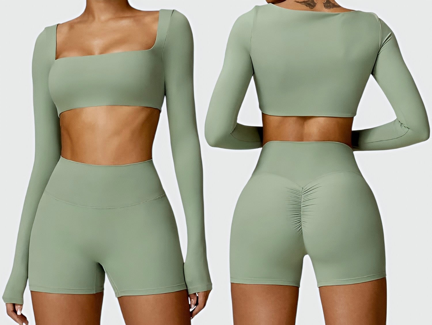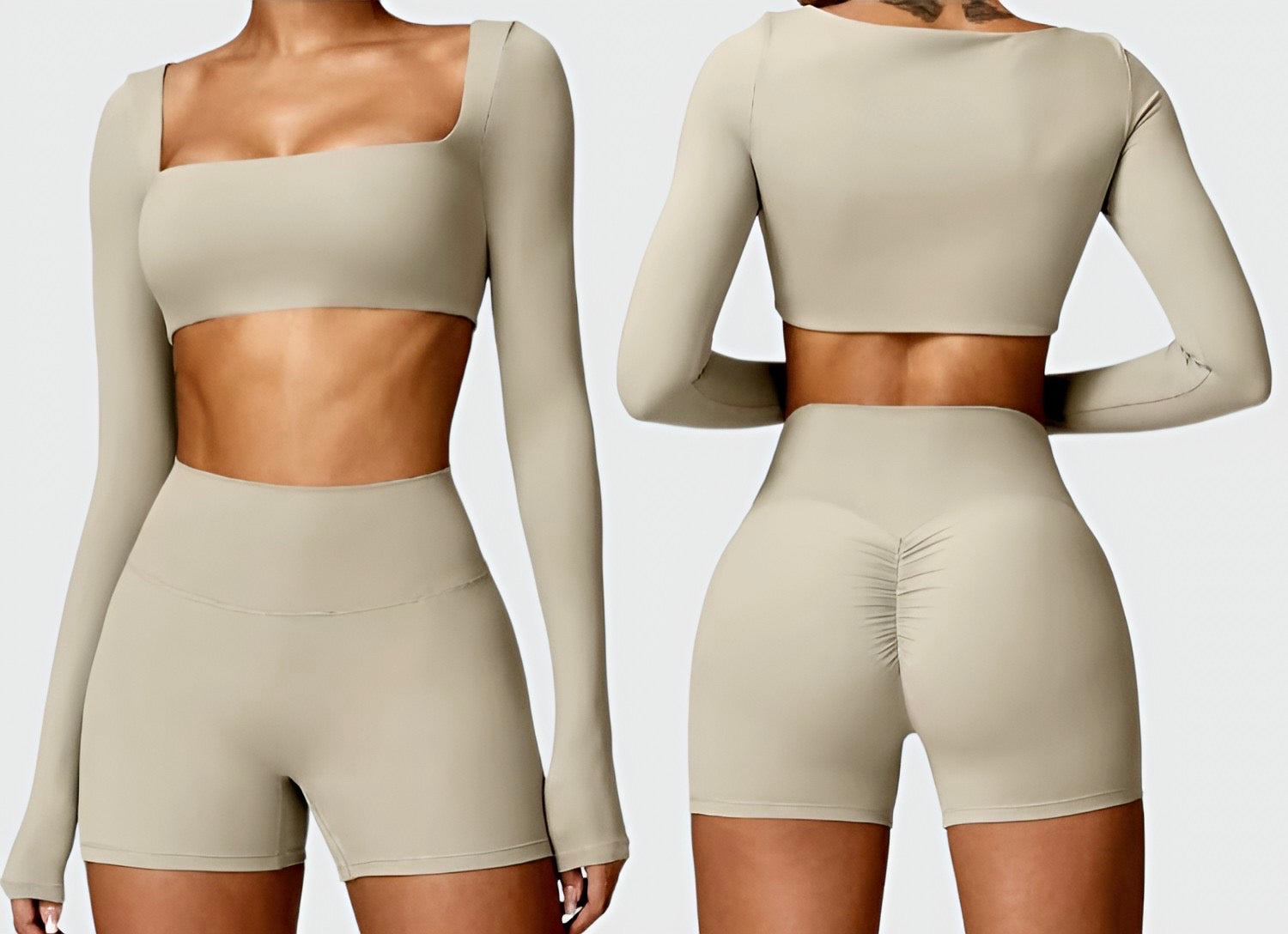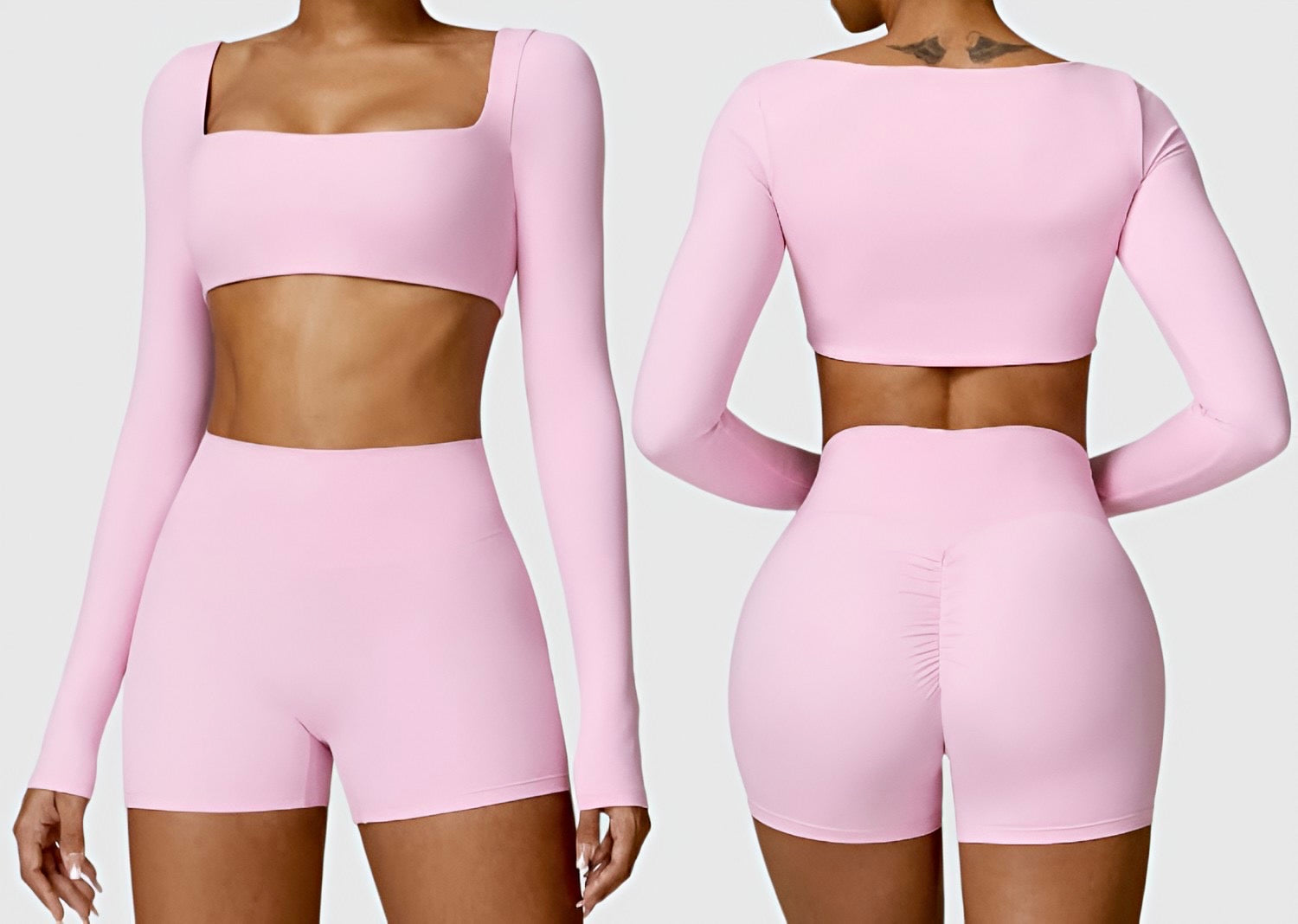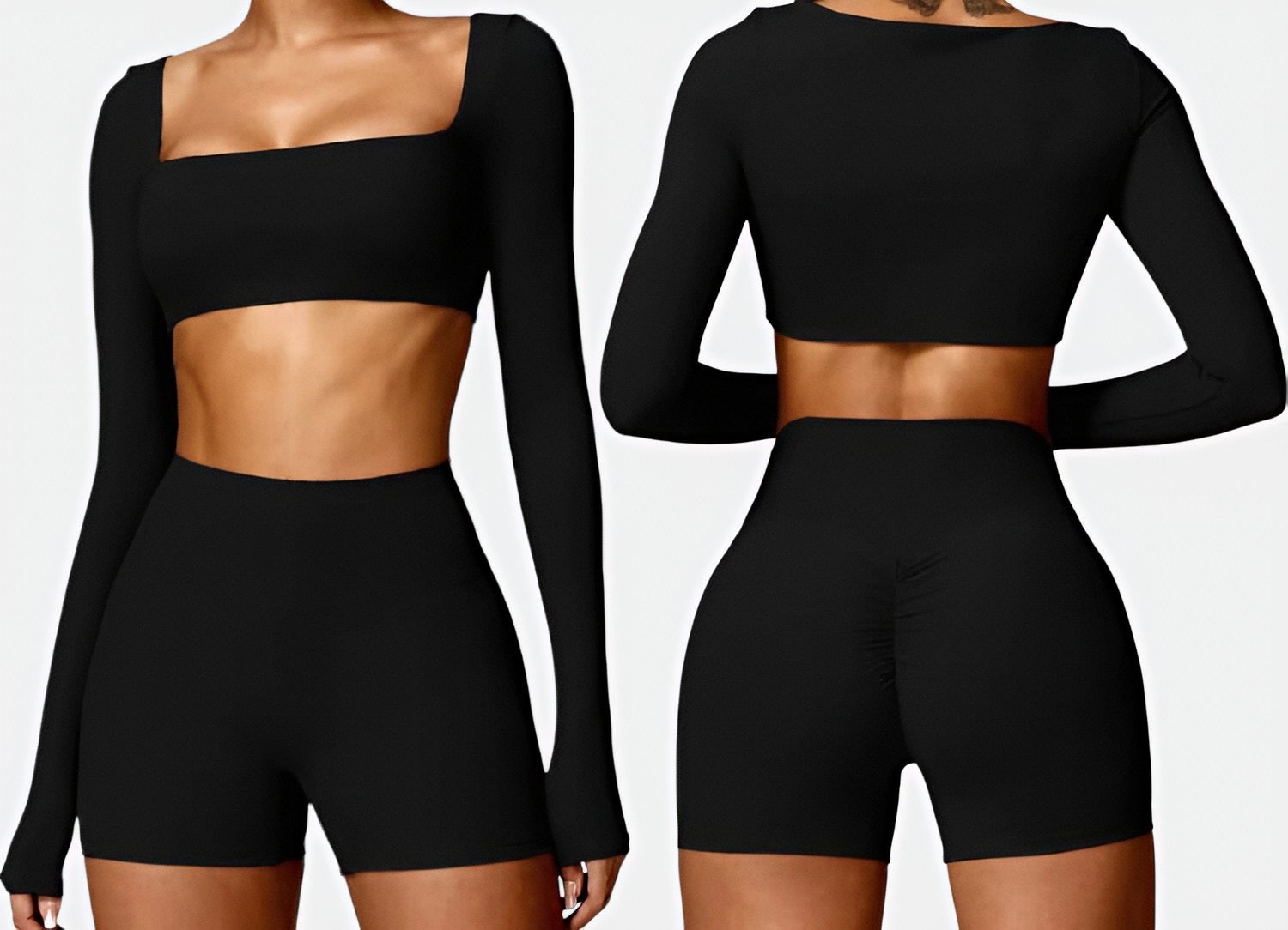 Este versátil set de short push up y crop top manga larga es perfecto para cualquier ocasión. Mantente cómodo y a la moda con su estilo athleisure. Haz una declaración con este conjunto que realza tu figura. ¡Ideal para lucir a la última!