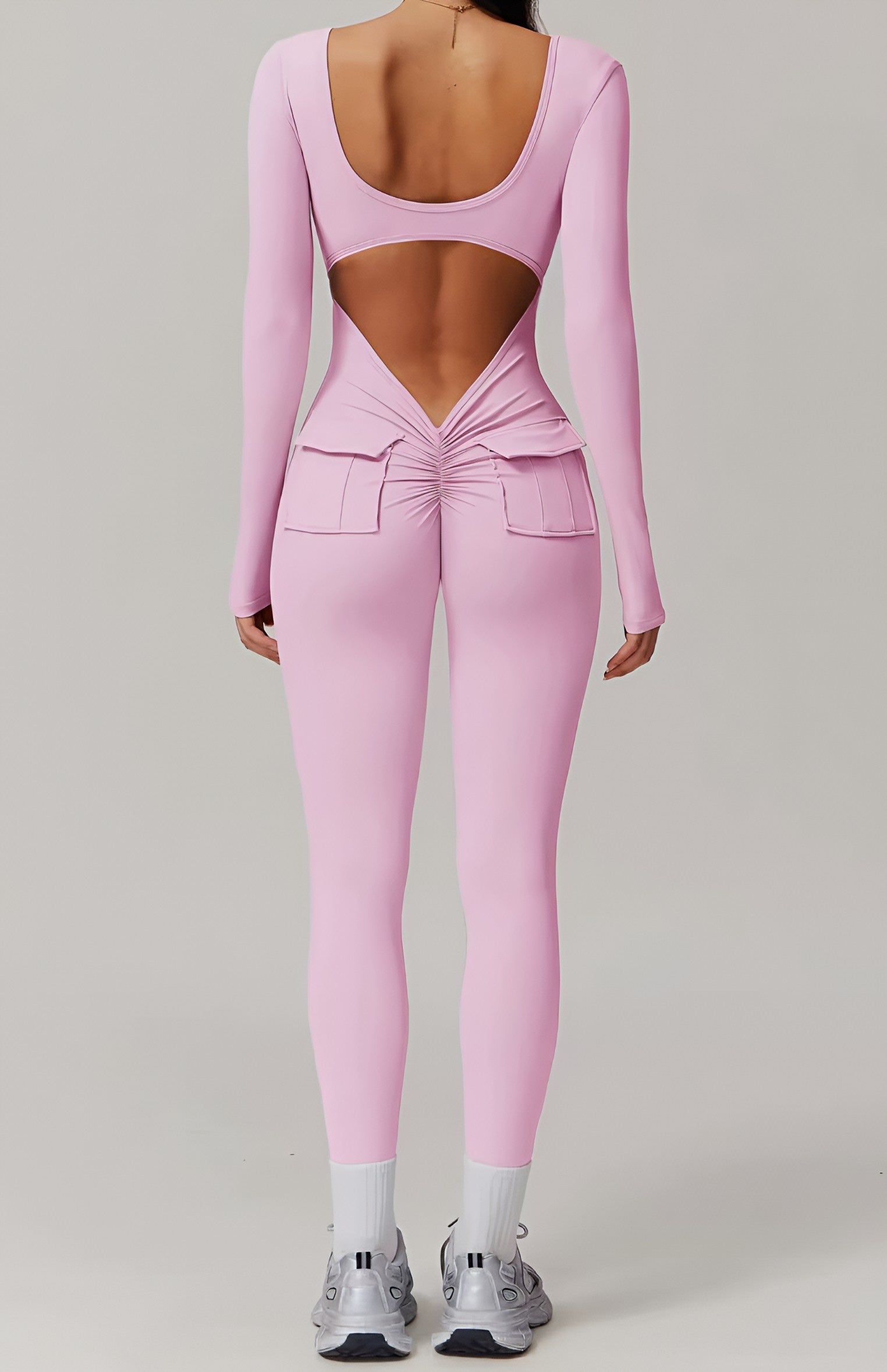 Enterizo v back, diseñado para realzar tu figura de manera sofisticada. Su cintura en V acentúa tus curvas, mientras que los bolsillos aportan una comodidad y versatilidad incomparables, con copas removibles. Además, su acabado sin costuras realza naturalmente los glúteos, brindándote un look favorecedor y chic en cualquier ocasión.