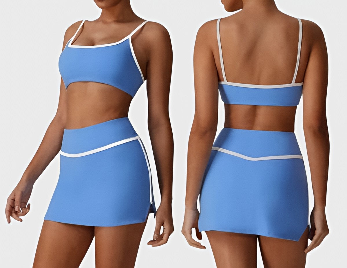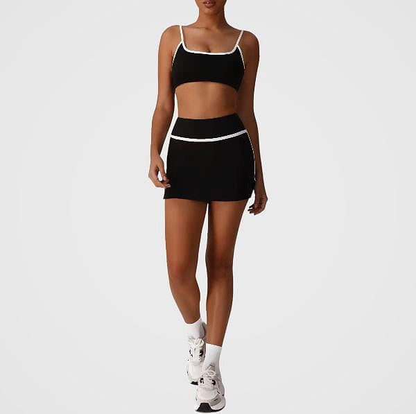 El set force skirt combina estilo y comodidad en una silueta que enamora. Incluye un top con delicado detalle de líneas y copas internas removibles que se ajustan a ti, acompañado de una falda perfecta que realza tu figura con un toque sutil y poderoso.