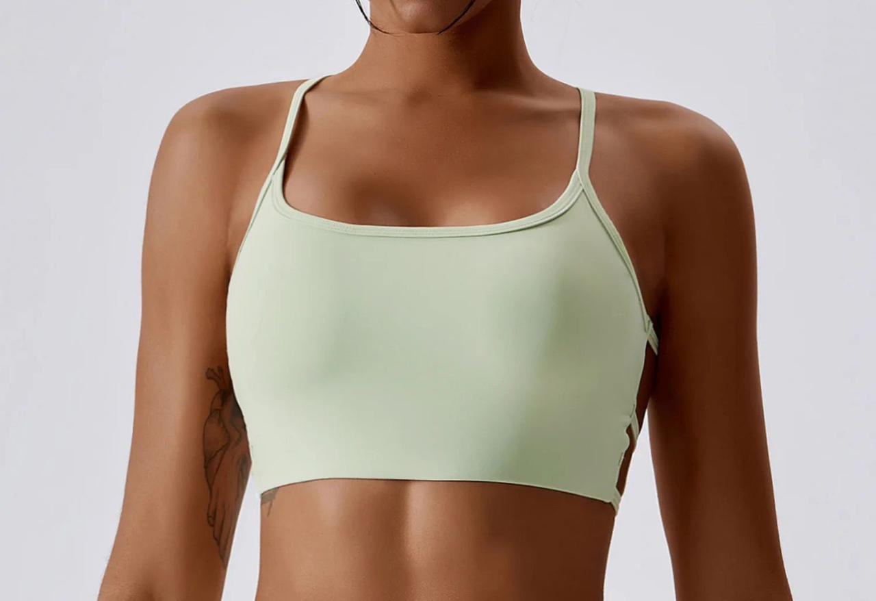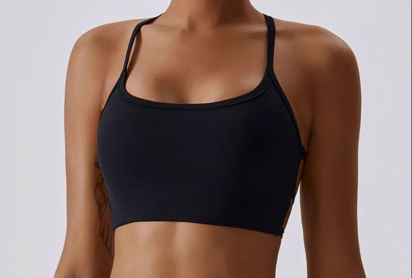 Skin-friendly double-sided high elastic fabric, soft and comfortable to touch, breathable. Thin double cross back straps and detachable cup design, front square neckline design, sexy backless. Suitable for exercise, yoga, running and other occasions.