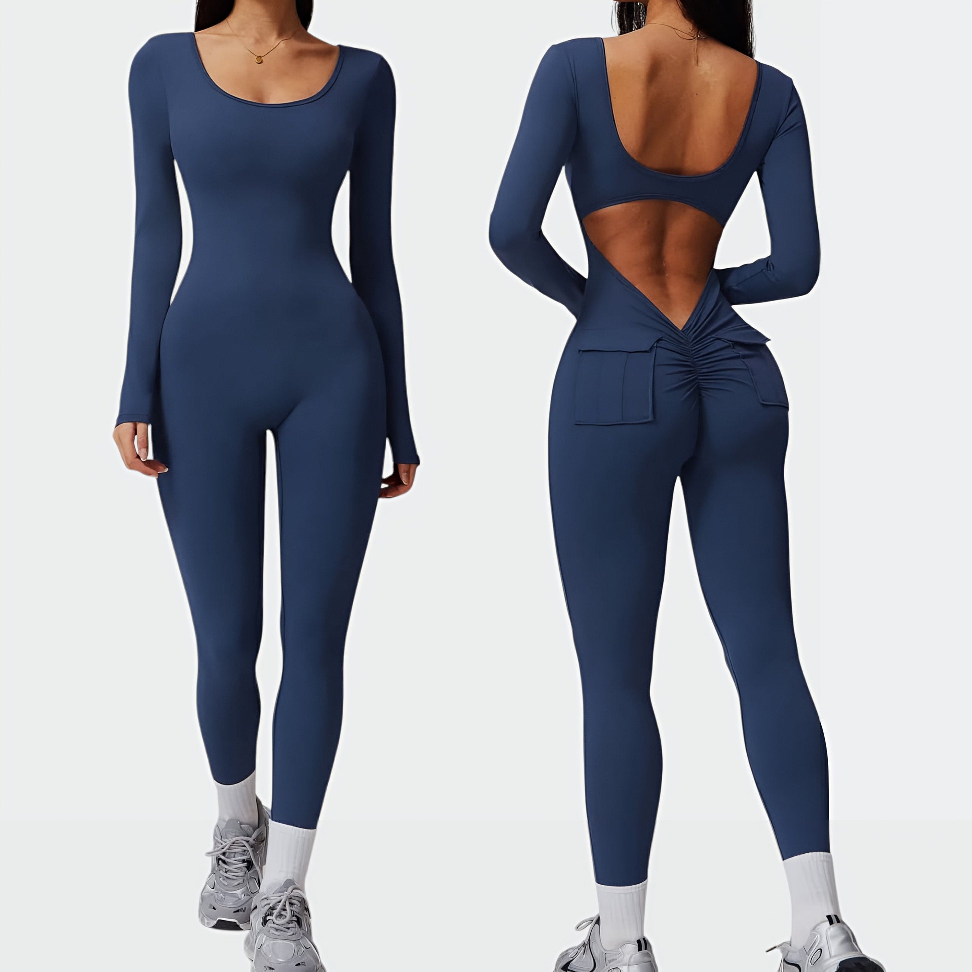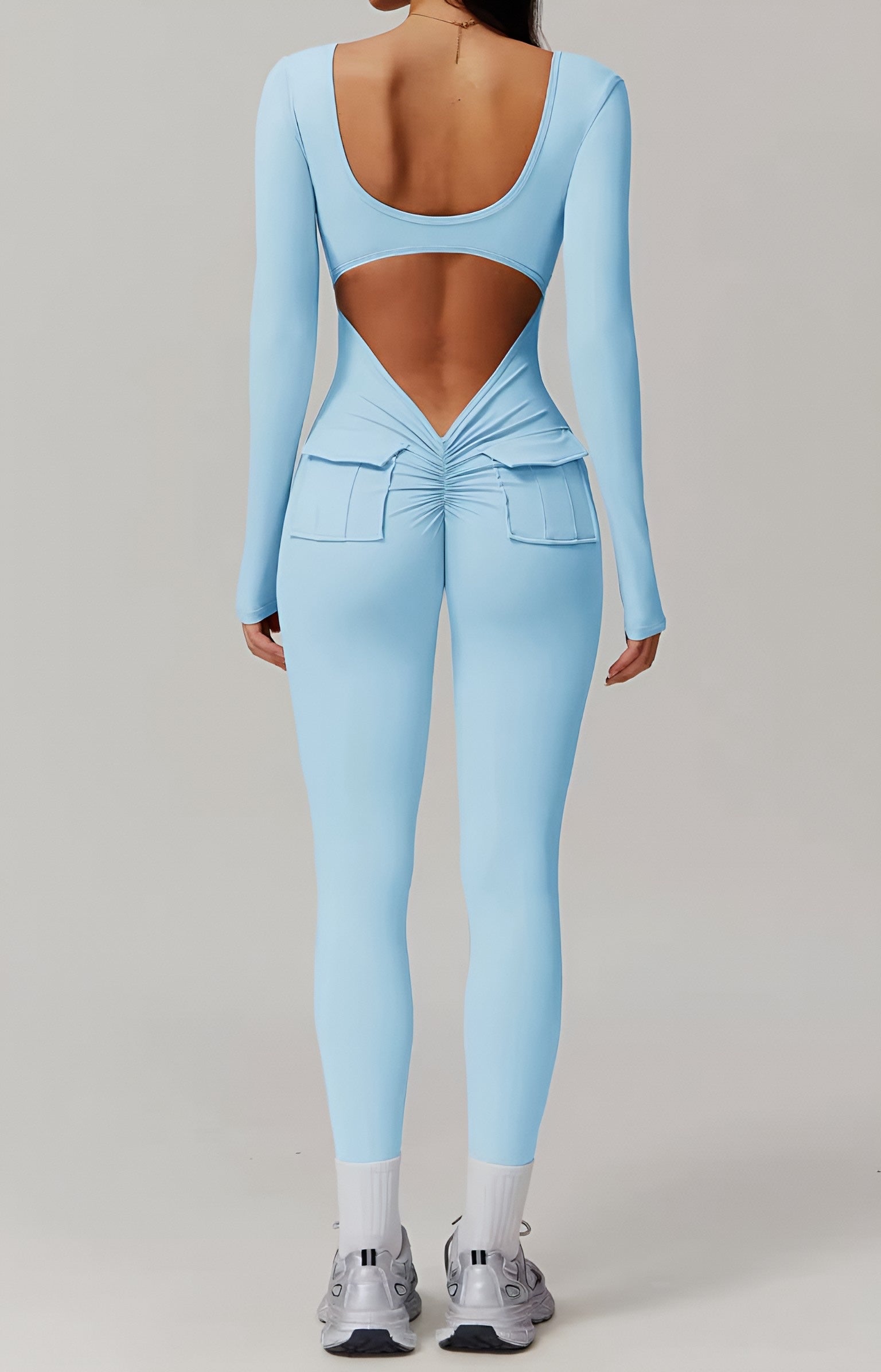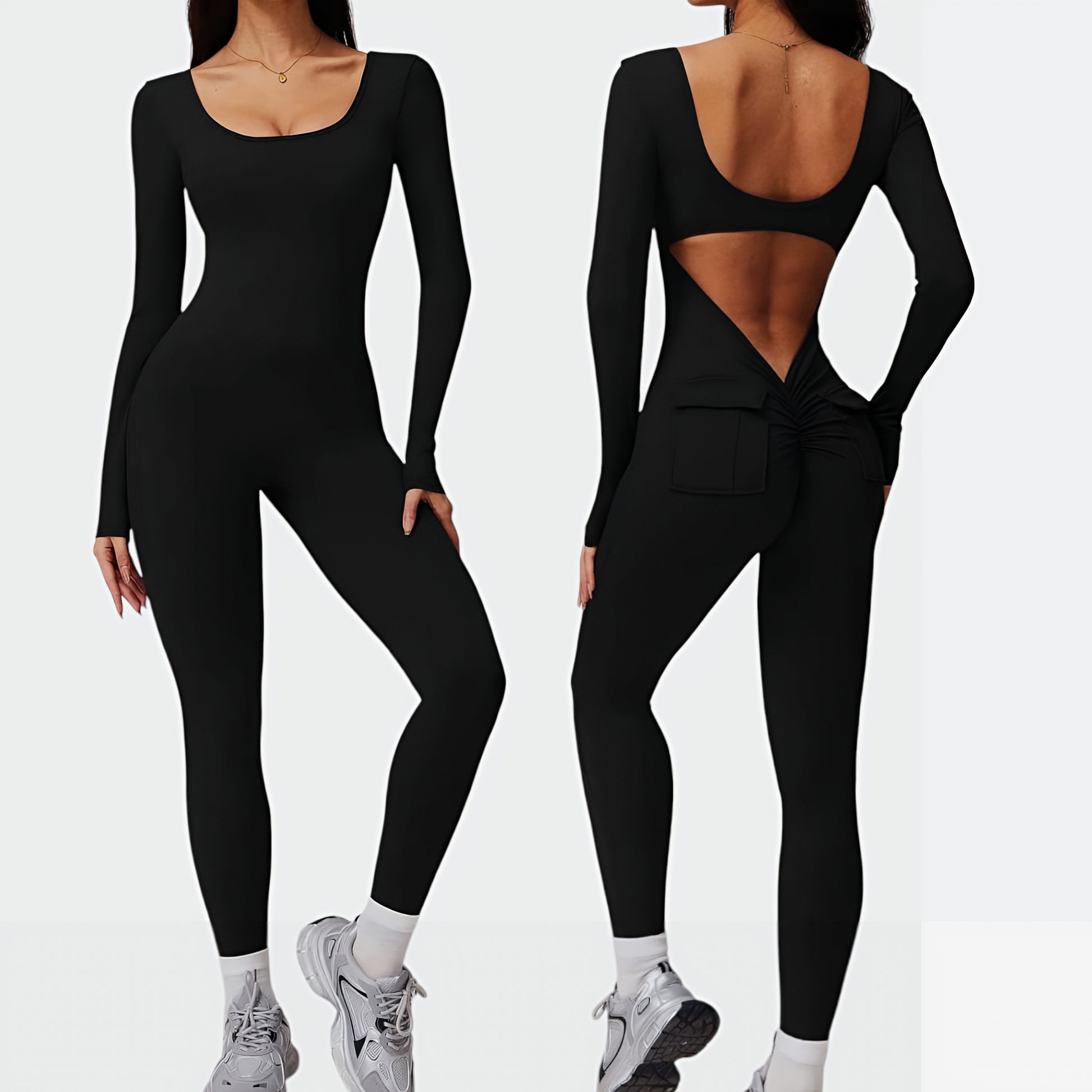 Enterizo v back, diseñado para realzar tu figura de manera sofisticada. Su cintura en V acentúa tus curvas, mientras que los bolsillos aportan una comodidad y versatilidad incomparables, con copas removibles. Además, su acabado sin costuras realza naturalmente los glúteos, brindándote un look favorecedor y chic en cualquier ocasión.