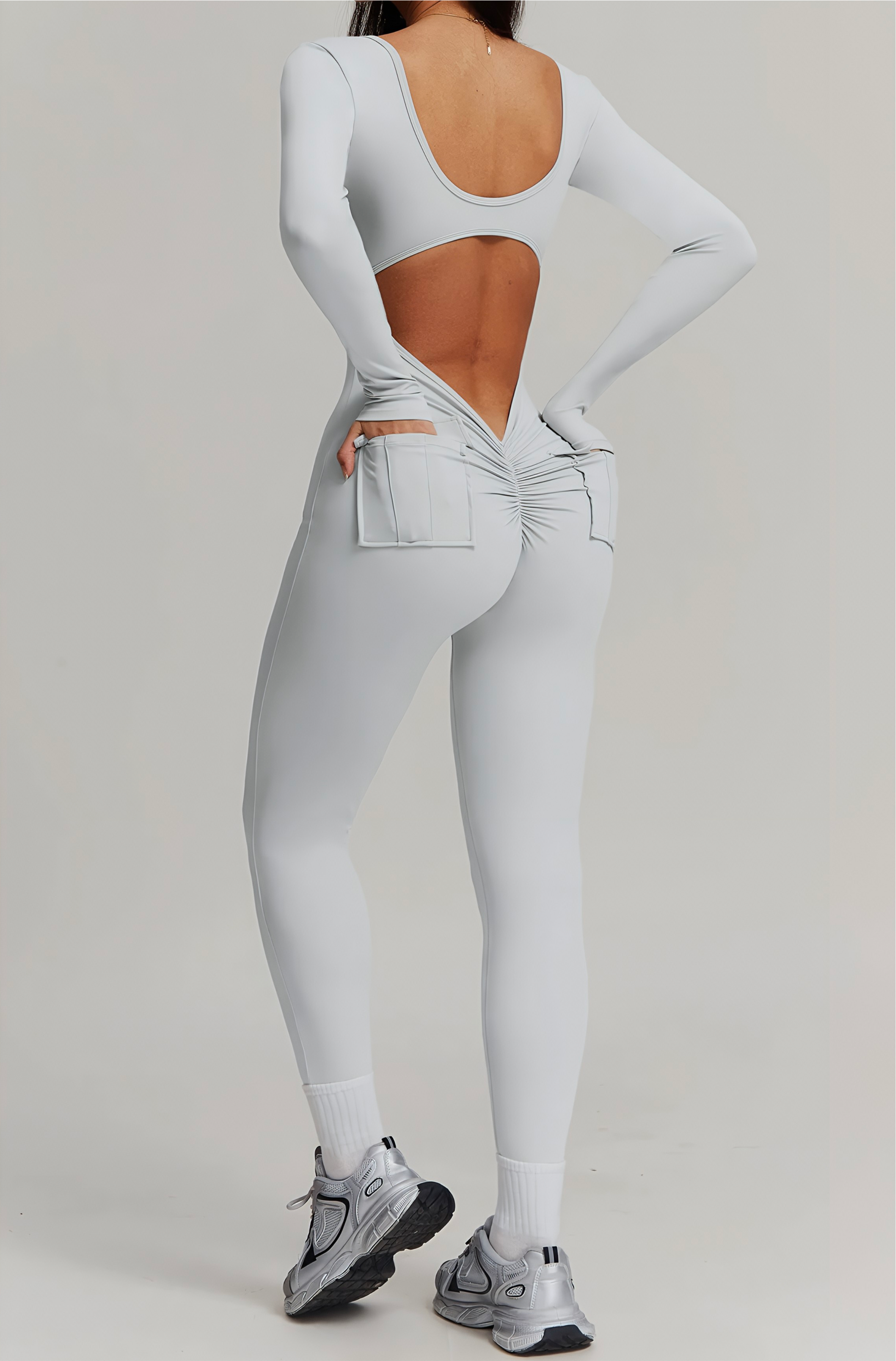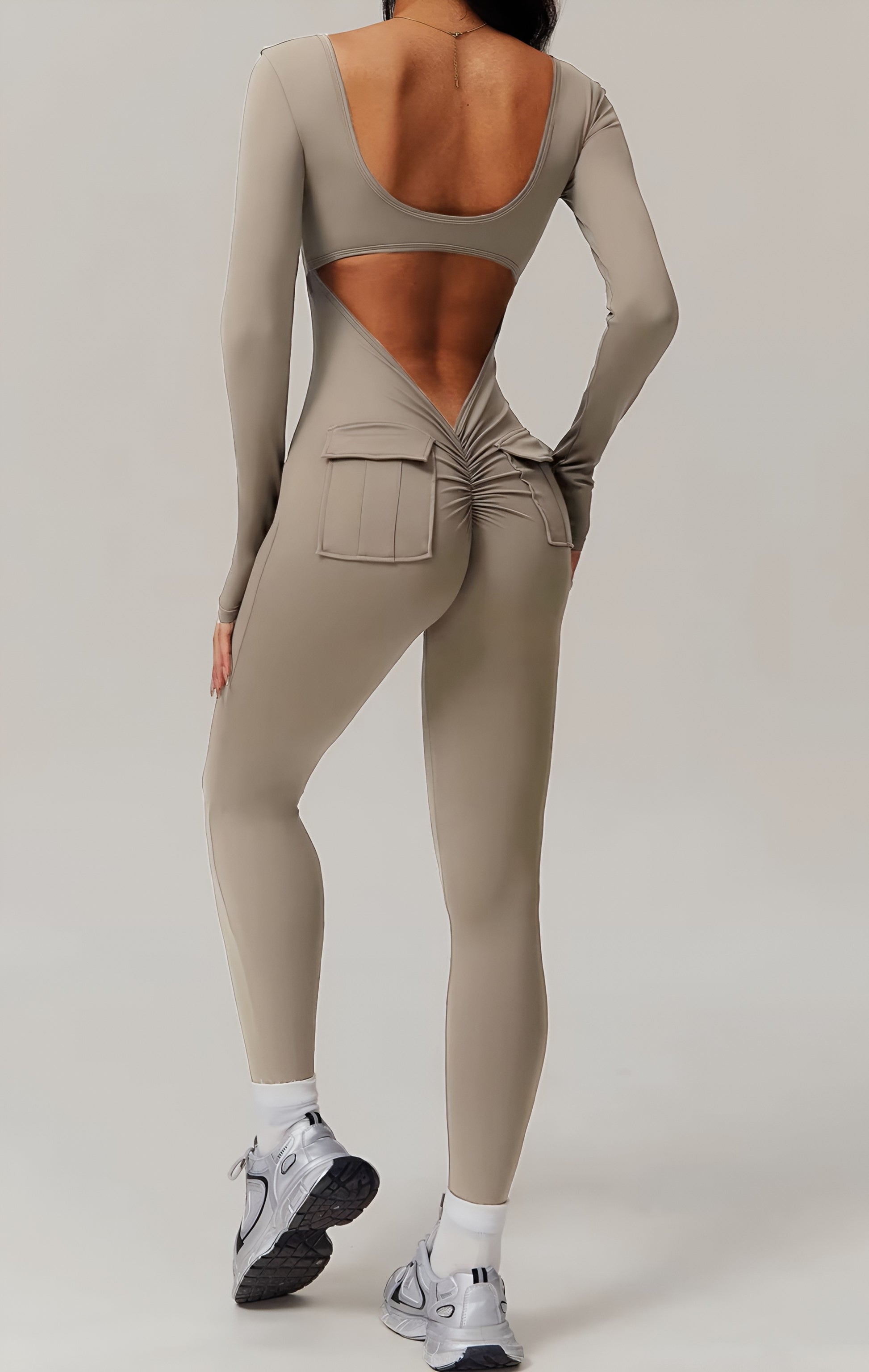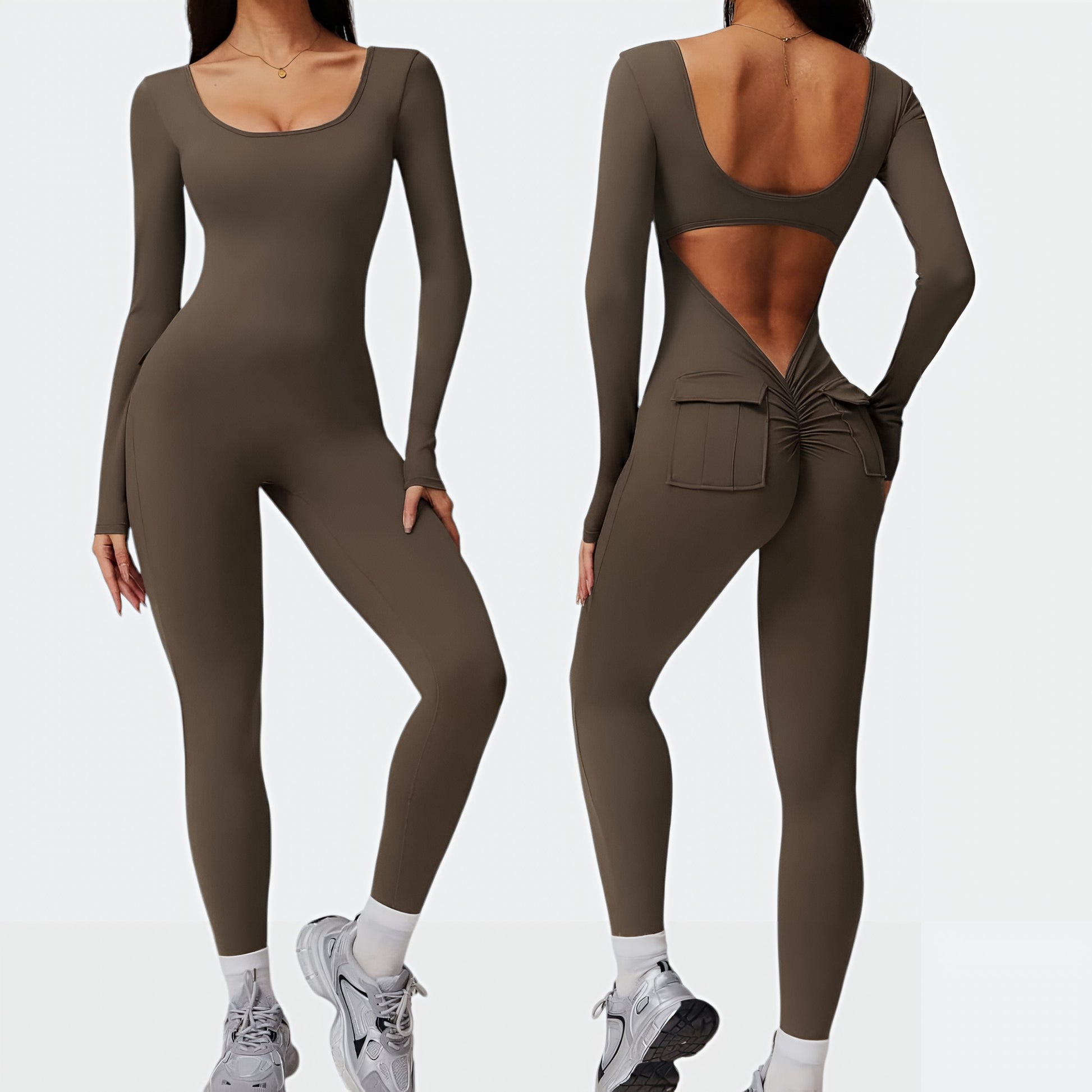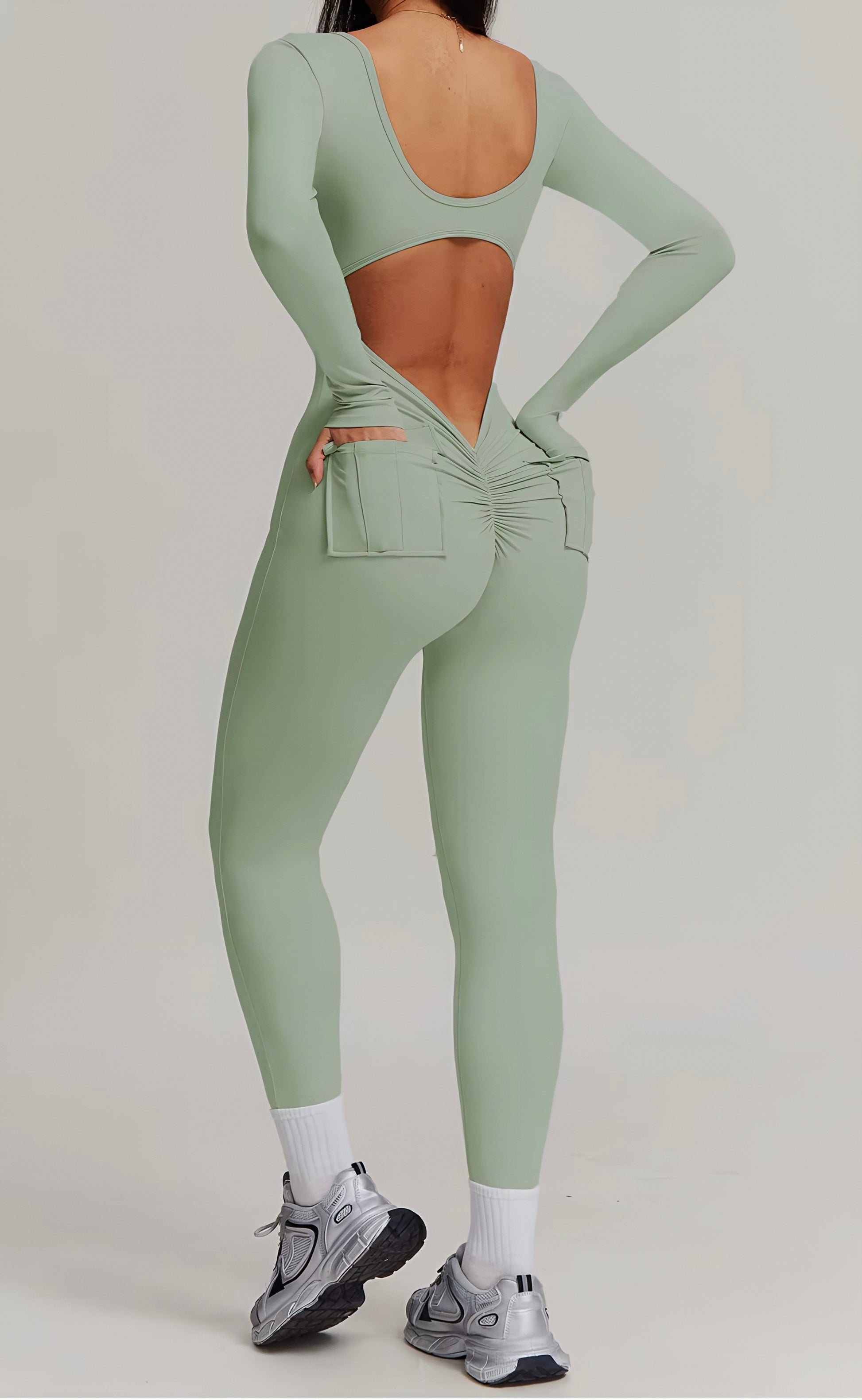 Enterizo v back, diseñado para realzar tu figura de manera sofisticada. Su cintura en V acentúa tus curvas, mientras que los bolsillos aportan una comodidad y versatilidad incomparables, con copas removibles. Además, su acabado sin costuras realza naturalmente los glúteos, brindándote un look favorecedor y chic en cualquier ocasión.