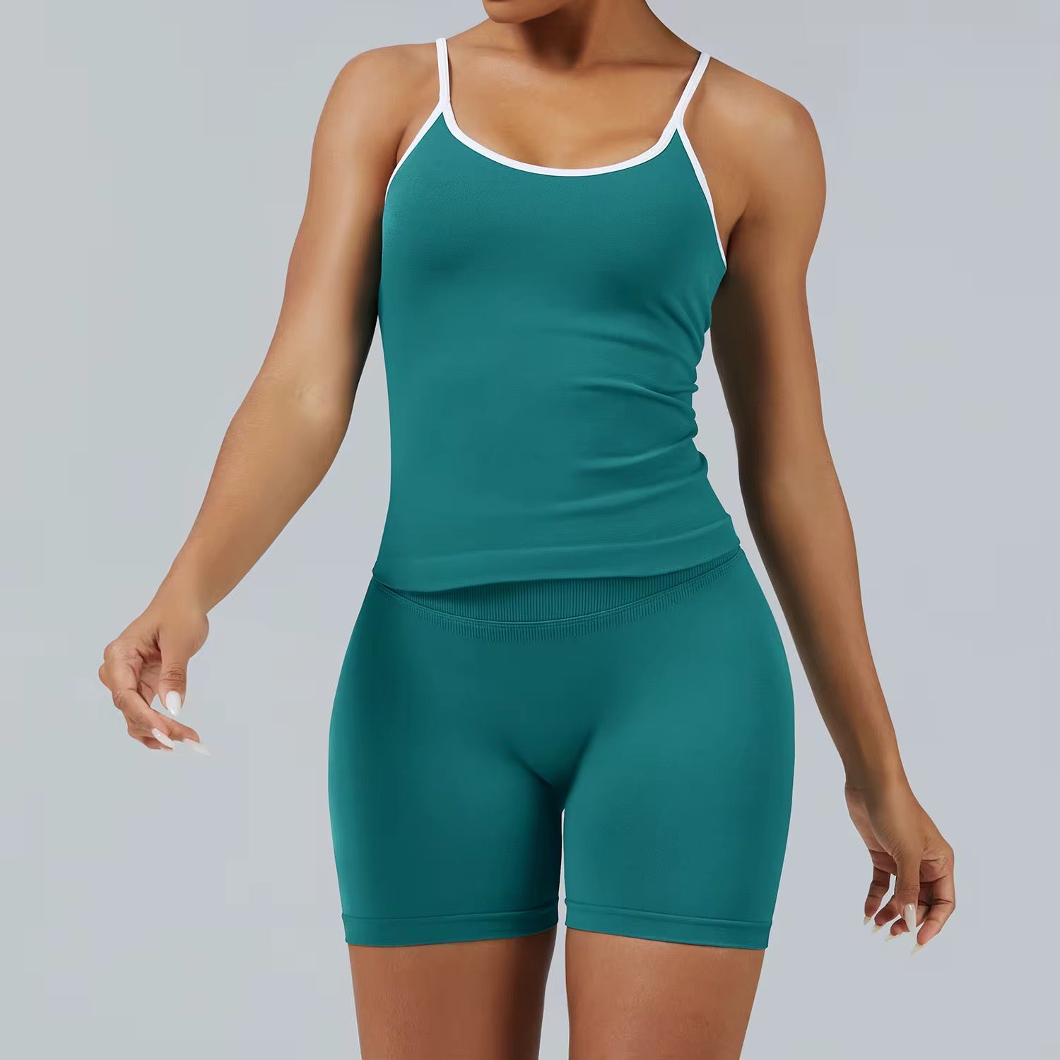 Set crop line diseñado especialmente para ejercicios de alta intensidad, este conjunto incluye un short adaptado para ofrecerte la máxima comodidad y libertad de movimiento, está confeccionado con una tela elástica y transpirable que se adapta a la forma de tu cuerpo permitiendo un rango completo de movimiento sin restricciones, su diseño de corte elevado resalta tus piernas y glúteos. El top con sus copas internas integradas asegura un soporte ideal para el busto, permitiéndote realizar ejercicios de alto impacto con confianza. Su diseño moderno y estilizado no solo ofrece funcionalidad sino que también se adapta a tus gustos personales.