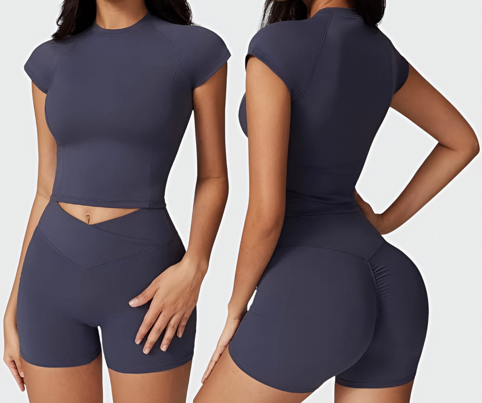 Este set de moda Athleisure incluye un cómodo t shirt y un short en forma de V. Perfecto para un estilo casual y activo. Confeccionado con materiales de alta calidad para una durabilidad duradera. ¡Añade un toque deportivo y moderno a tu guardarropa!
