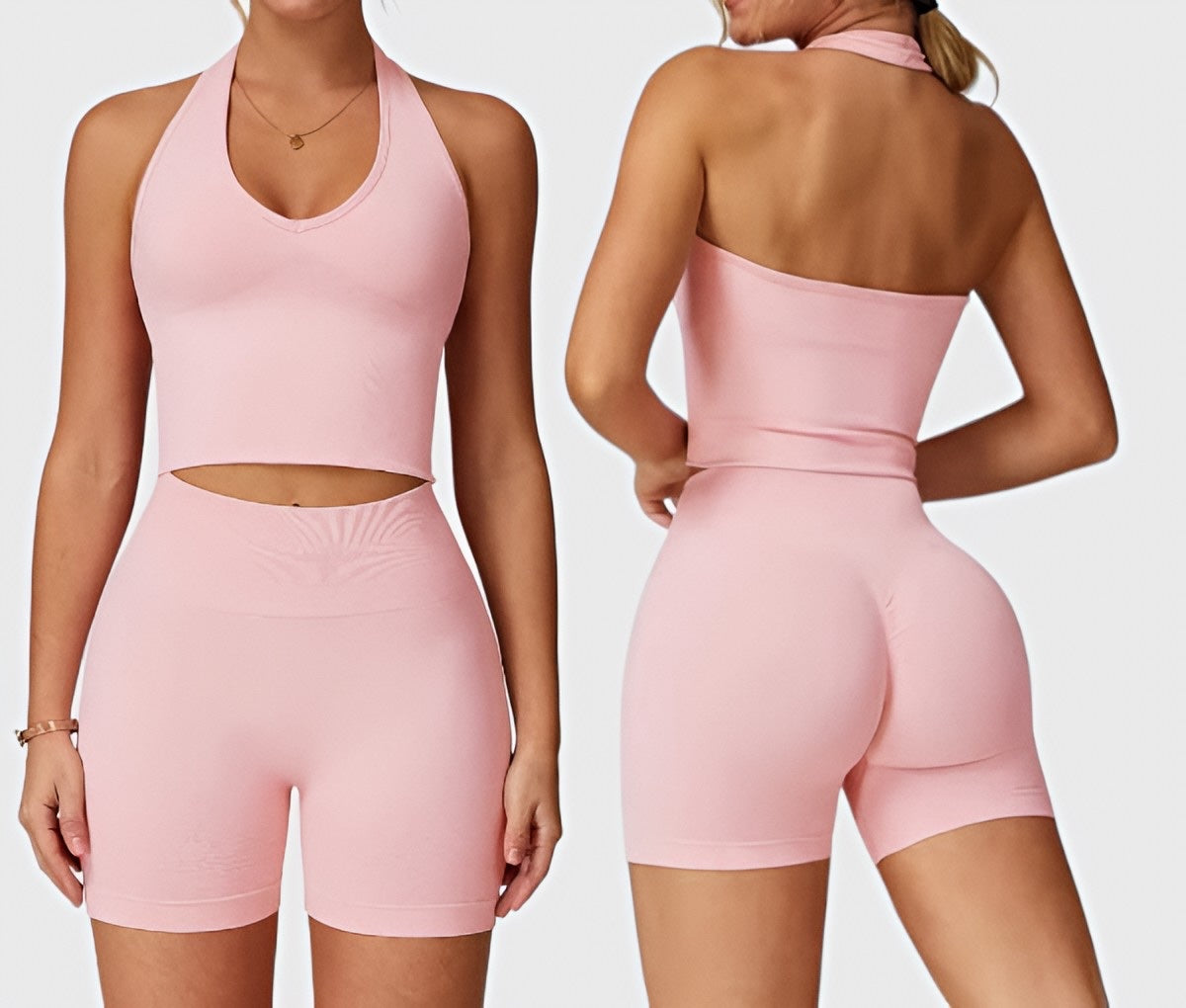 El set zenith ha sido diseñado para llevar tu estilo y rendimiento al máximo nivel. Su top de espalda descubierta con copas internas removibles combina soporte y sensualidad, mientras que el short push up realza y moldea tus curvas de manera espectacular.